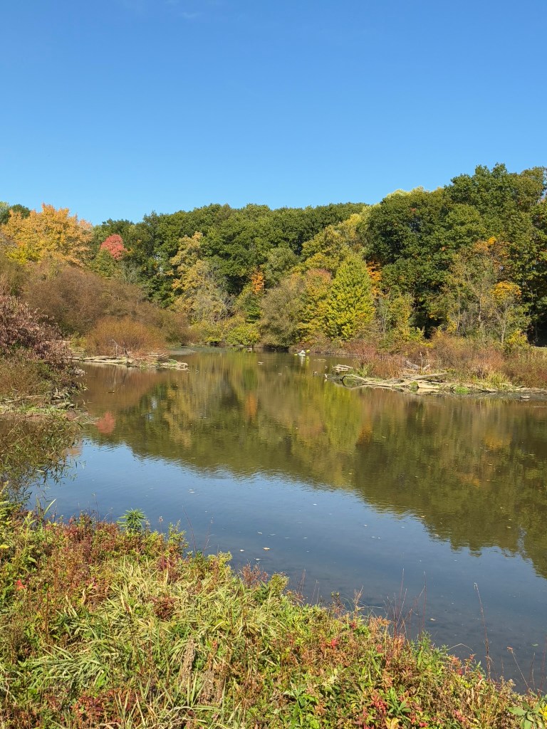 Mill Creek offers a little bit of everything for every pace, from peaceful walking trails to scenic drives, waterfalls, and even wetlands that hum with life. At the Newport Wetlands, we spotted a lone kayaker gliding across the water, the reflection of red maples rippling around him. It was a perfect snapshot of calm, the kind of moment that feels like it belongs in a postcard.