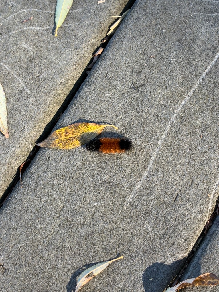 We started our day driving through winding park roads framed by trees ablaze in orange, red, and yellow. The kind of colors that make you stop mid-sentence just to take it all in. The air was warm but crisp, the sky an impossible shade of blue. We came across a few caterpillars inching along a wetlands boardwalk and some Giant Puffball fungi sprouting near the trail — small signs of life preparing for the season ahead.
